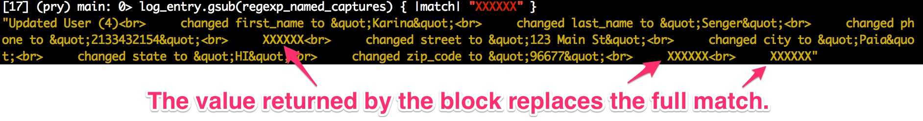 log_entry.gsub(regexp_named_captures) { |match| "XXXXXX" }