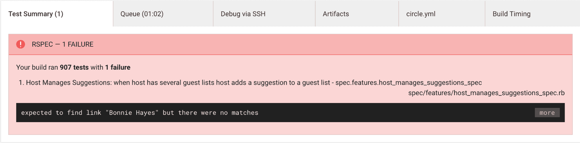 As a bonus, if any tests fail, they show up in an easy-to-read format right at the top of the page. That means no more searching through endless lines of noise to find your failing test.