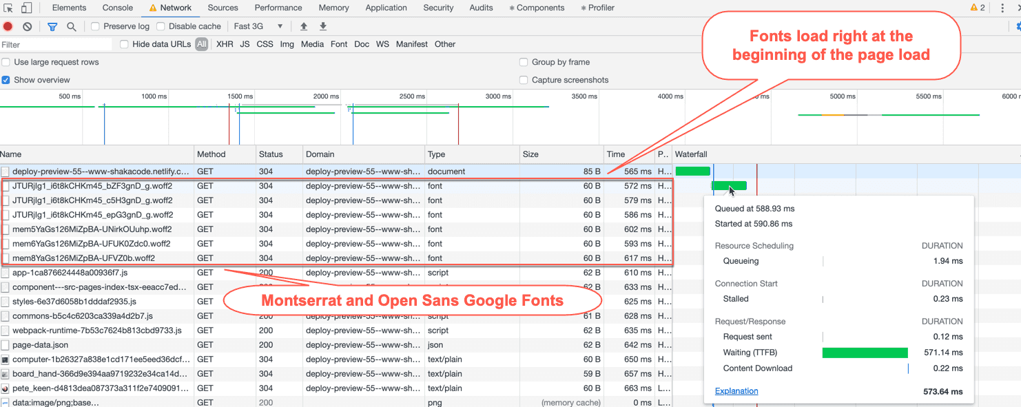 Now, all the Google fonts load right at the beginning of the page load.